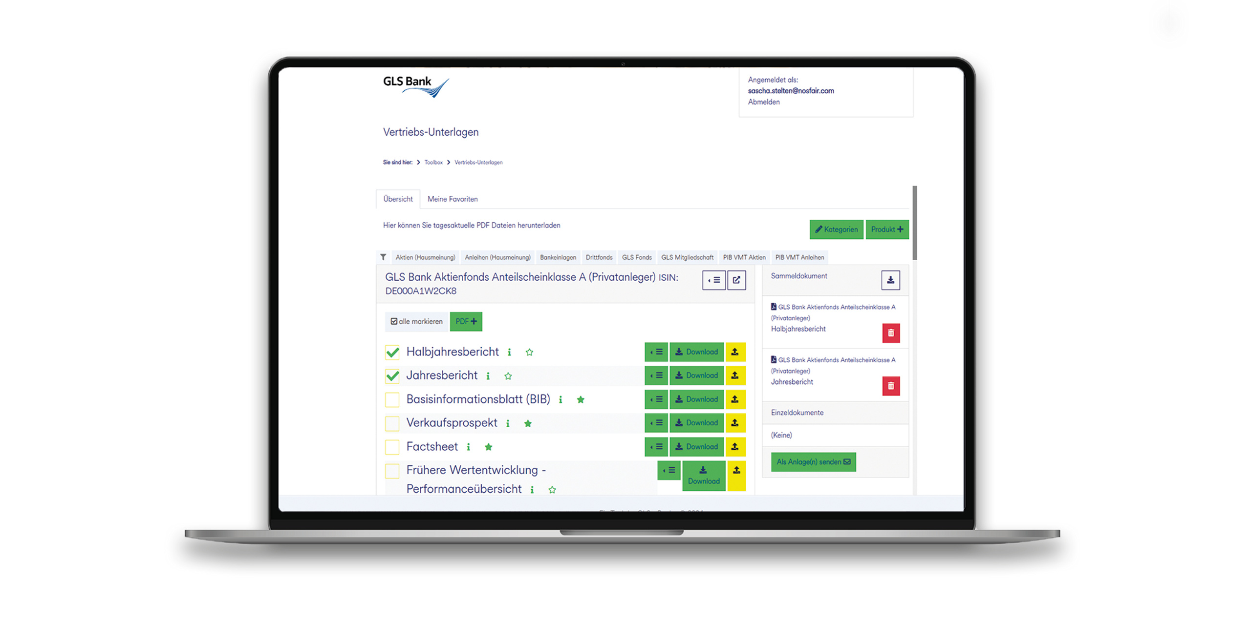 Im Anlagebereich der GLS Bank mussten die MitarbeiterInnen sicherstellen, dass KundInnen immer die aktuellsten Dokumente der verschiedenen Fondsgesellschaften erhalten, wenn Anlageprodukte empfohlen wurden. Diese Dokumente stammen jedoch aus unterschiedlichen Quellen, und jede Gesellschaft hat ihre eigenen Verwaltungs- und Webportale, um die neuesten Versionen bereitzustellen. Dies führte dazu, dass die MitarbeiterInnen bei fast jedem Kundengespräch mehrere verschiedene Plattformen durchsuchen mussten, um die aktuellen Dokumente zusammenzustellen.