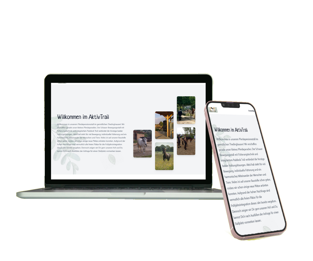 Die Zusammenarbeit mit unseren KundInnen vom AktivTrail begann mit der Erstellung einer ansprechenden Internetpräsenz. Schlank und ansprechend sollte sie sein und zudem auf den Punkt bringen, was die Alleinstellungsmerkmale dieser besonderen Pferdepension sind. Eine Besonderheit lag darin, dass die langfristige Vision der InhaberInnen die komplette Digitalisierung der Hofverwaltung beinhaltete. Dies bedeutete, dass bereits zu Beginn berücksichtigt werden musste, dass weitere digitale Lösungen hinzu kommen würden. Ein klarer Fall von "früher an später denken" also. Es folgt eine kleine Übersicht.